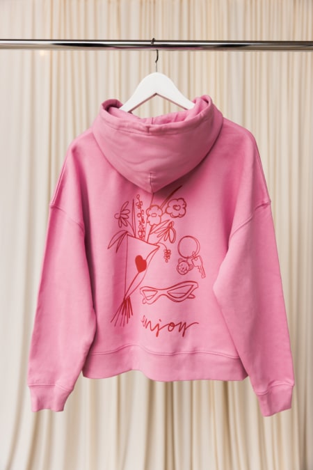 Gefertigt aus 100 % Bio-Baumwolle und innen angenehm flauschig, sorgt unser Hoodie für extra Wohlfühlmomente.
